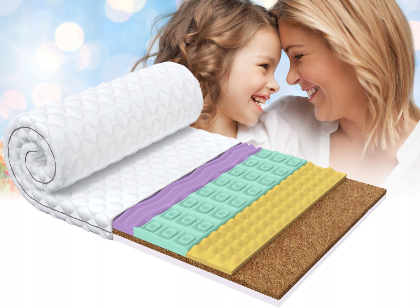 ✔ 3 warstwy komfortu – pianka PUR, mata kokosowa i pianka profilowana tworzą idealny balans między stabilnością a wygodą.